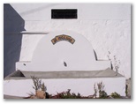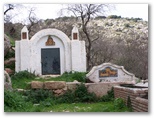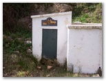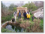 señalan donde se encontraba el nacimiento de agua y al lado, una caseta con el nombre de la fuente.