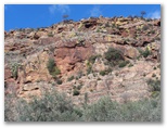 Teja. Seguimos el carril, que ahora es de tierra y observamos ya algunos alcornoques y restos de vegetación mediterránea. Descendemos y vemos a nuestra derecha una pared rocosa de rocas metamórficas rojizas. Seguimos