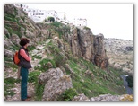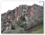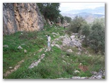 sendero que atraviesa olivos y almendros. Llegamos hasta una zona con una gran pared rocosa caliza a nuestra derecha.