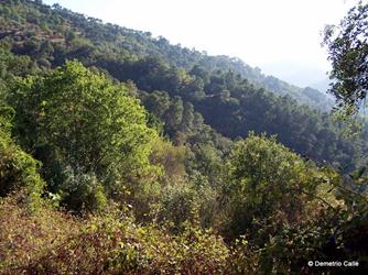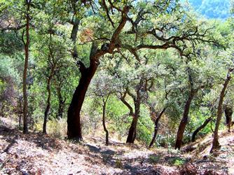 de alcornoques, pinos y encinas en la que abundan también los líquenes, hongos