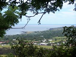 por un sendero señalizado. Las vistas del aeropuerto y de Hanga Roa son