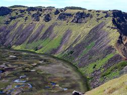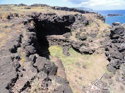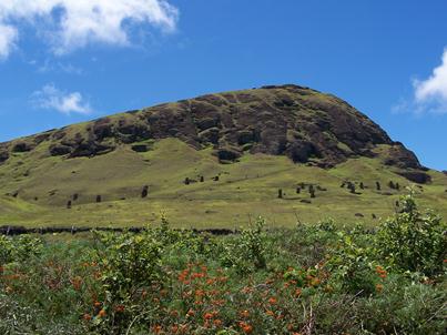 cráter de 1,5 km y una laguna de 250 m de profundidad. Situado al sur de la isla, cerca de Hanga Roa, guarda algunos