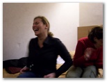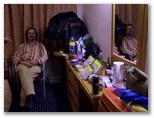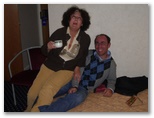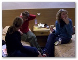 todos juntos en una de nuestras habitaciones. Las chicas compran sándwich, empanadas, zumos, cervezas y agua. Mientras