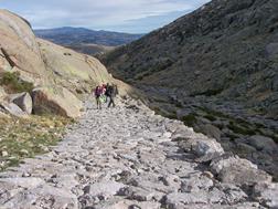 Los últimos metros de ascenso nos conducen a la gran meseta de los Barrerones (2170 m.), parte intermedia de la Cuerda del Cuento y desde dónde se admira un espléndido panorama de las cumbres de Gredos, entre otras, Almanzor y Galana.