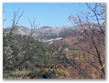 Tras una cerrada curva a la derecha el camino desciende, y aparecen madroños; también se ven zumaques, encinas y diversas jaras; en la lejanía y entre tanto verdor surgen las poblaciones de Pujerra y Cartajima; en lado opuesto, al oeste, se alza la enorme mole del Cancho Armola, que en algunas zonas está recortado por precipicios.