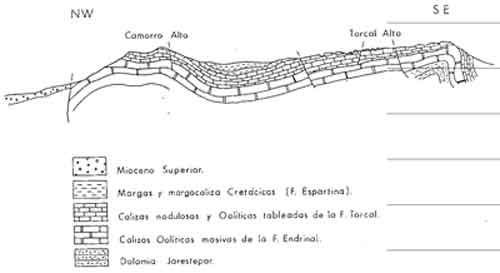 Lias, Dogger y Malm, del período Jurásico (ver corte geológico, de Martín Algarra, 1987).