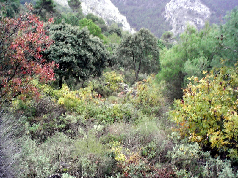 la ascensión se observa cómo va cambiando la vegetación para dar paso al matorral mediterráneo: enebros, sabinas, aulagas, salvia, tomillo,