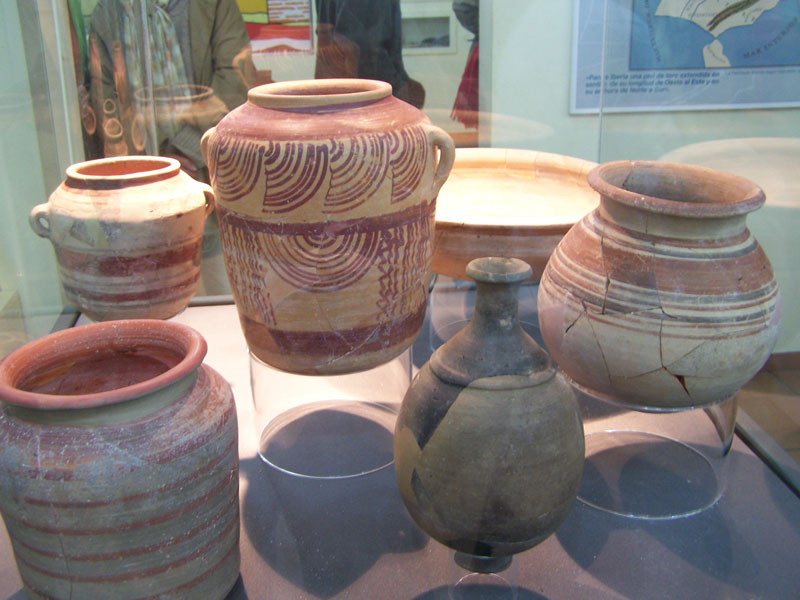 con la industria del aceite. Foto 4: Panel del bosque mediterráneo. Foto 5: Diversos objetos de cerámica ibera