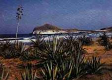 RELACIÓN DE FOTOGRAFÍAS: Pulsar en el enlace correspondiente. Foto 1: Vista de las playas del Cabo de Gata. Foto 2: formaciones costeras y sisales. Foto 3: dibujo de la formación volcánica Cerro de los Frailes. Foto 4: dibujo de azufaifo. Foto 5: dibujo de sisal. ELEMENTOS DESTACABLES: El paisaje, las franjas costeras, las