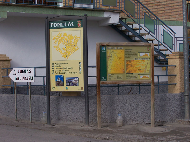 Al llegar a Fonelas es recomendable ver los paneles que hay expuestos  a la entrada de la localidad donde se